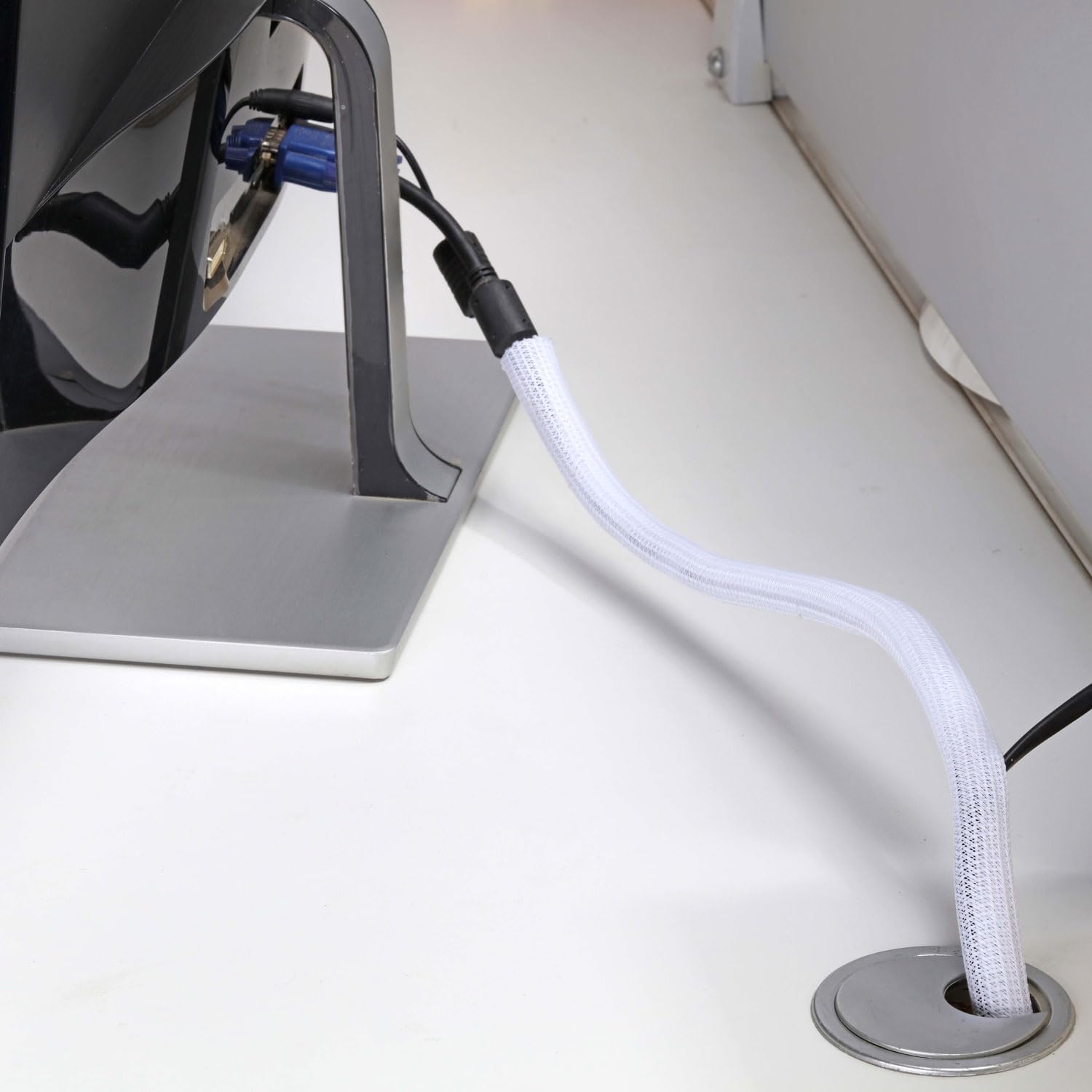 1/2″ x100ft Split Sleeve Wire Loom Tubing – Chew-Proof Pet-Safe Cord Protector for USB, Power, Audio/Video Cables | Durable Cable Sleeve to Protect Cats & Wires | Easy Install, White,