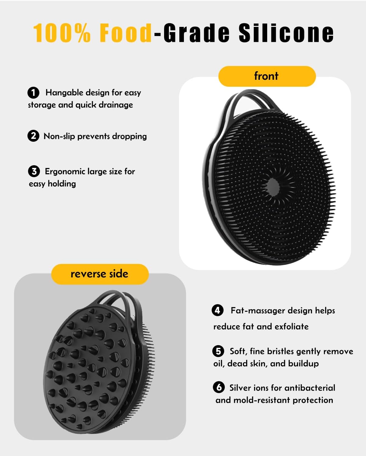 2 in 1 Silicone Body Scrubber, Anti Cellulite Massage Scrubber, Exfoliating Shower Brush for Men & Women, Removes Dead Skin, Reduces Cellulite, Improves Circulation, Fast Dry, Non Slip (1PC, Black),