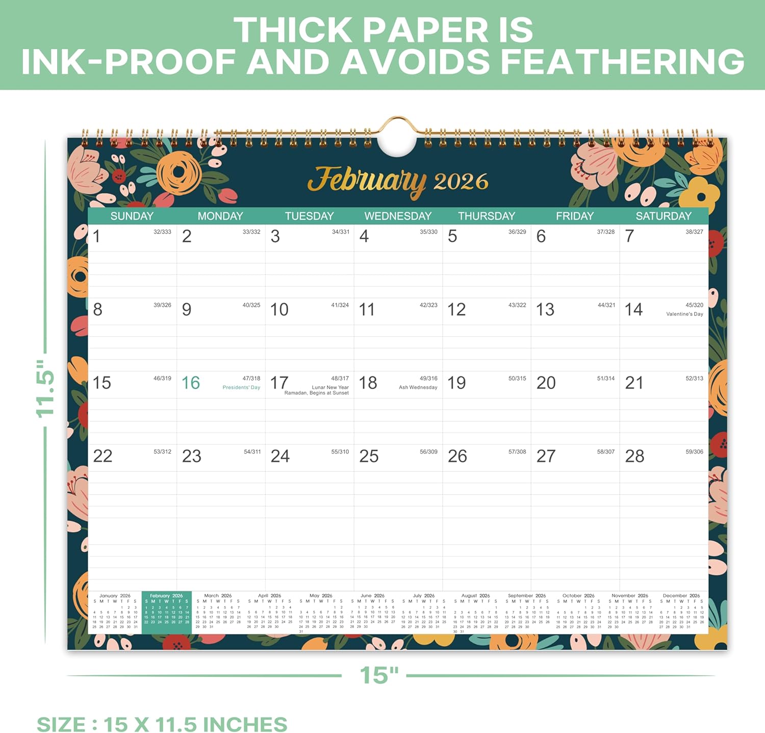2026 Calendar – 2026 Wall Calendar, Jan 2026 – Dec 2026, 2026 Wall Calendar 12 Month, 15″ x 11.5″, Twin-Wire Binding, Julian Dates, Large Block, Notes, To-do List, Thick Paper, Perfect for Organizing – Floral,