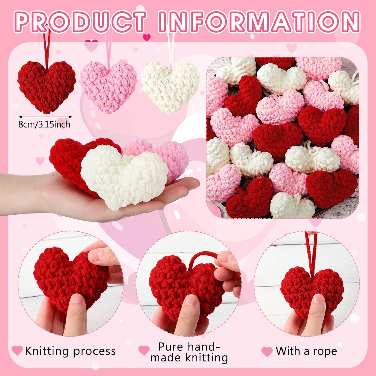 Amyhill 12 Pcs Valentine’s Day Ornaments Crochet Heart…,