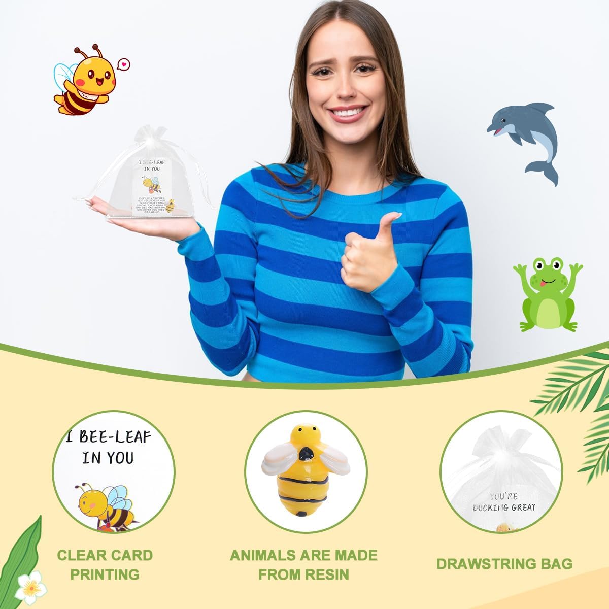 60Sets Christmas Employee Appreciation Gifts Bulk for Coworkers Thank You Staff Gift Funny Animal Pun Greeting Note Cards Inspirational Resin Office Pocket Gifts,