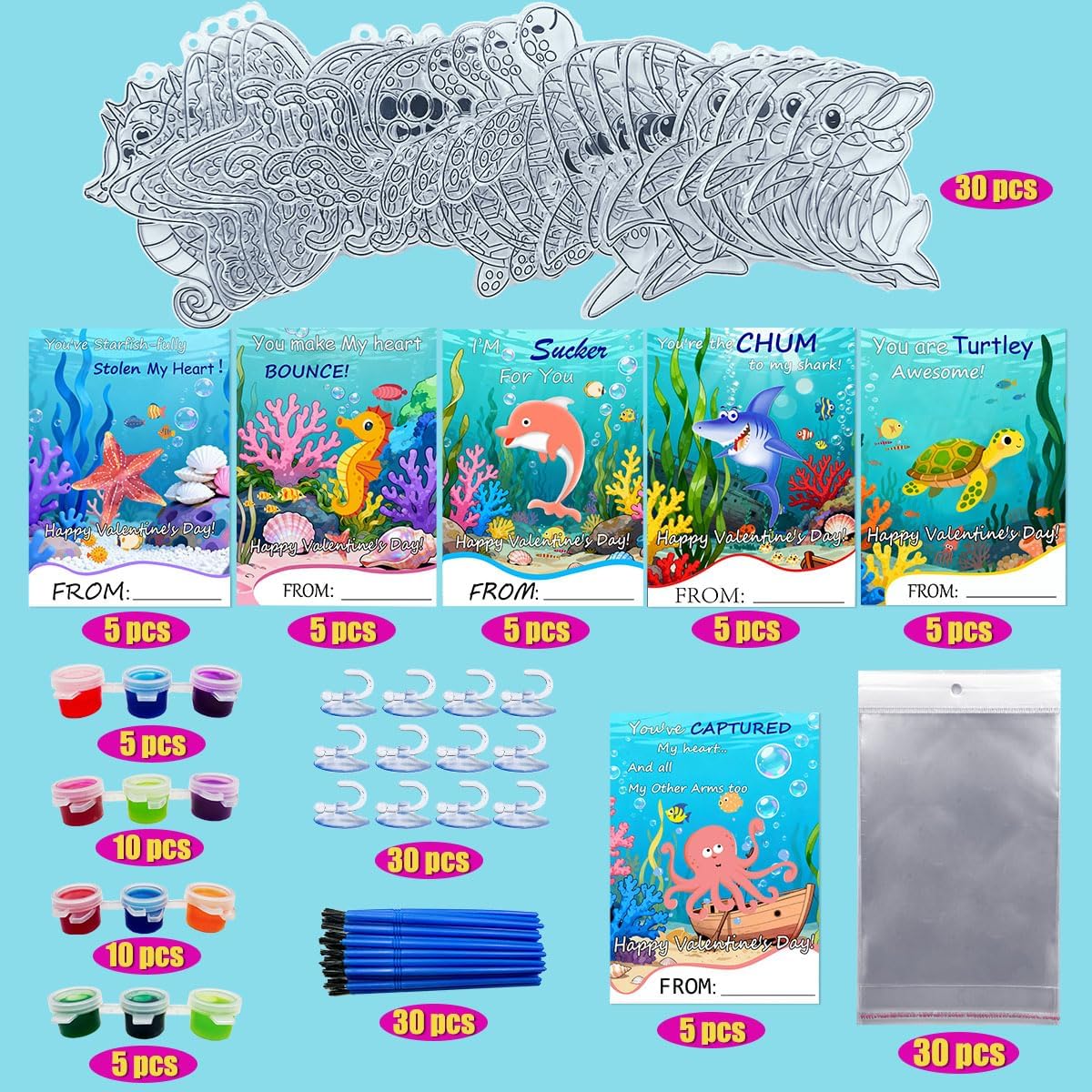 AUEKIV 30Sets Valentines Day Cards with Ocean Animal…,