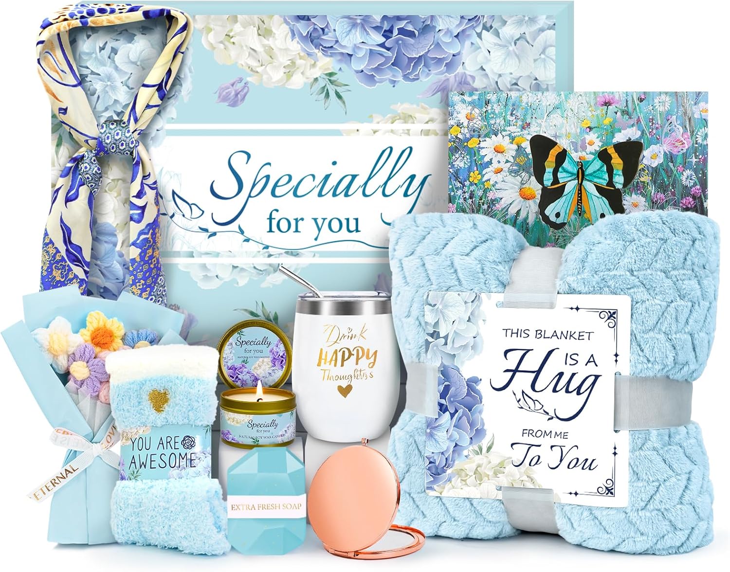 Valentines Day Gifts for Her Women Daughter Girlfriend Wife, Happy Birthday Gifts for Women Mom Her Sister Wife Grandma, Self Care Gift Get Well Relaxing Spa Galentines Day Gift Basket Set (Blue),