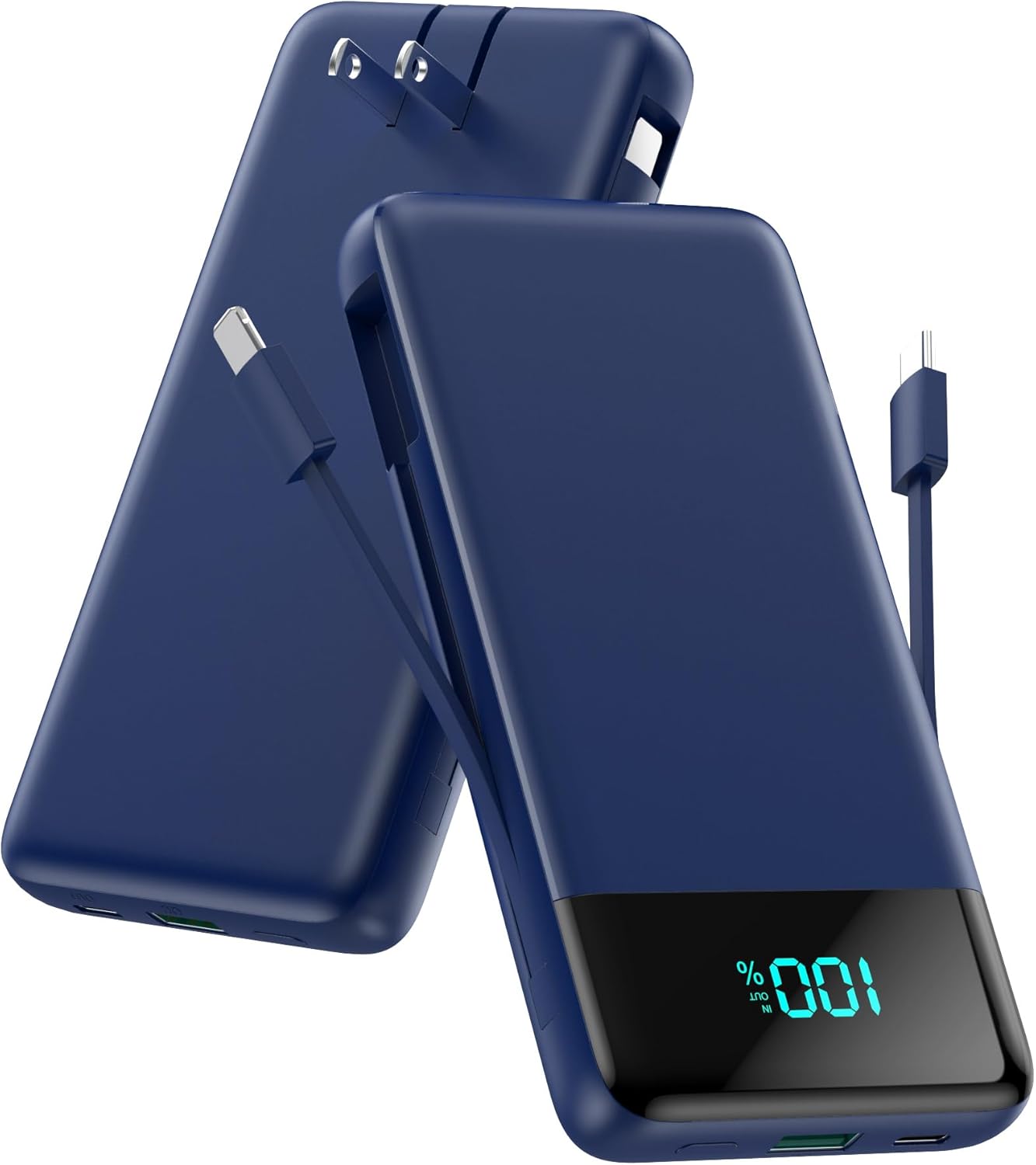Portable Charger for iPhone with Built in Cables and Wall…,