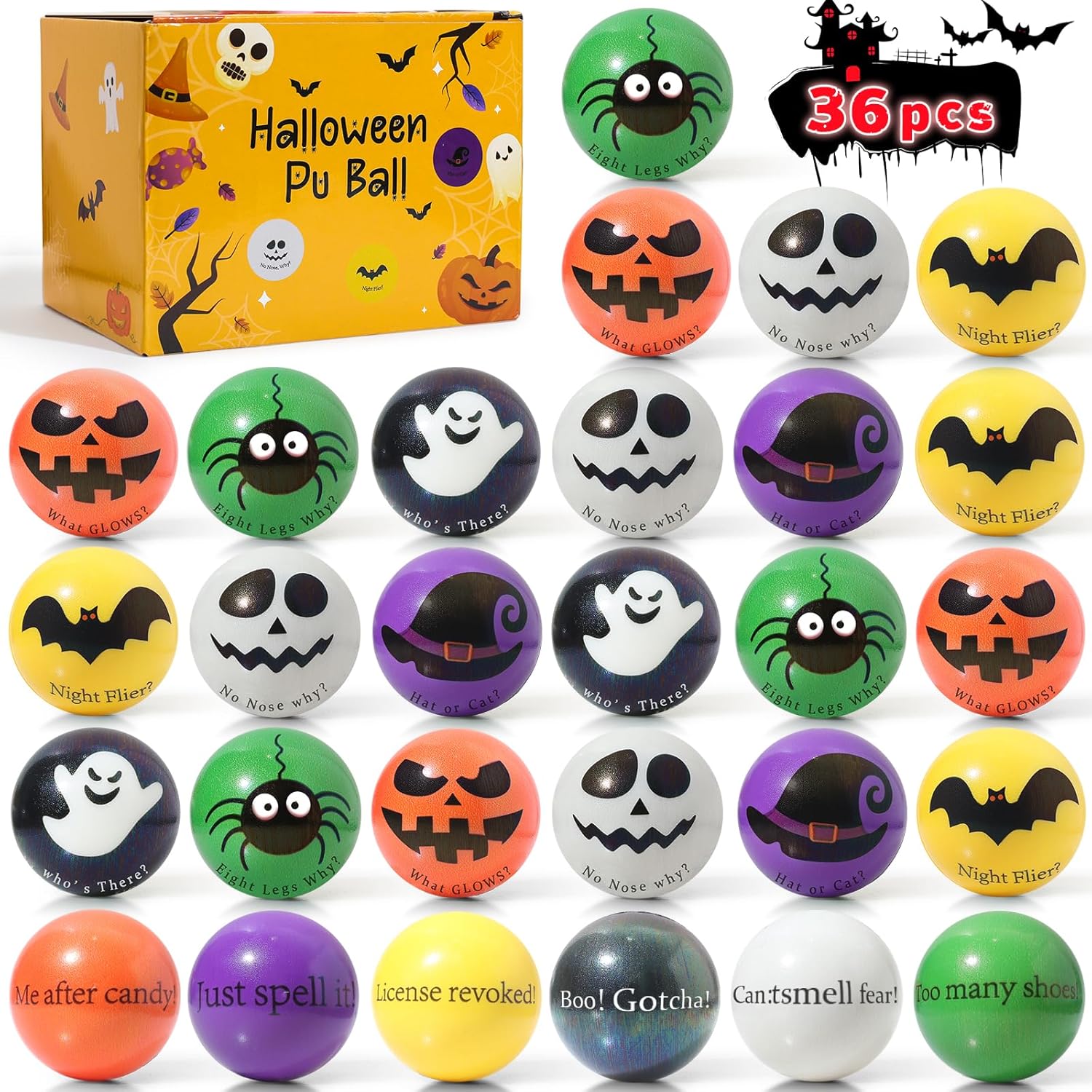 Halloween Stress Balls, Halloween Fidgets, 36Pc Scary Fun Stress Relief PU Ball Toys, Ghost Pumpkin Icons Hilarious Text Gifts Ideal Stress Squeeze Ball Funny Halloween Boy Girls Gifts Toys,
