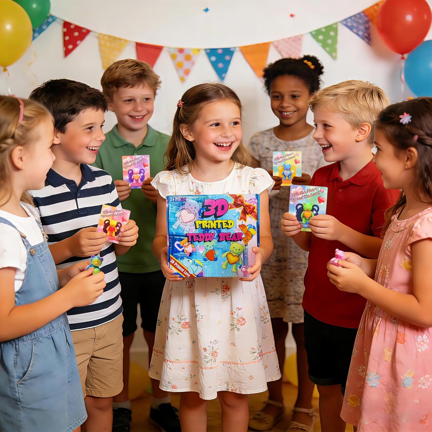24Pcs 3D Printed Valentine’s Day Teddy Bears with Spinning…,