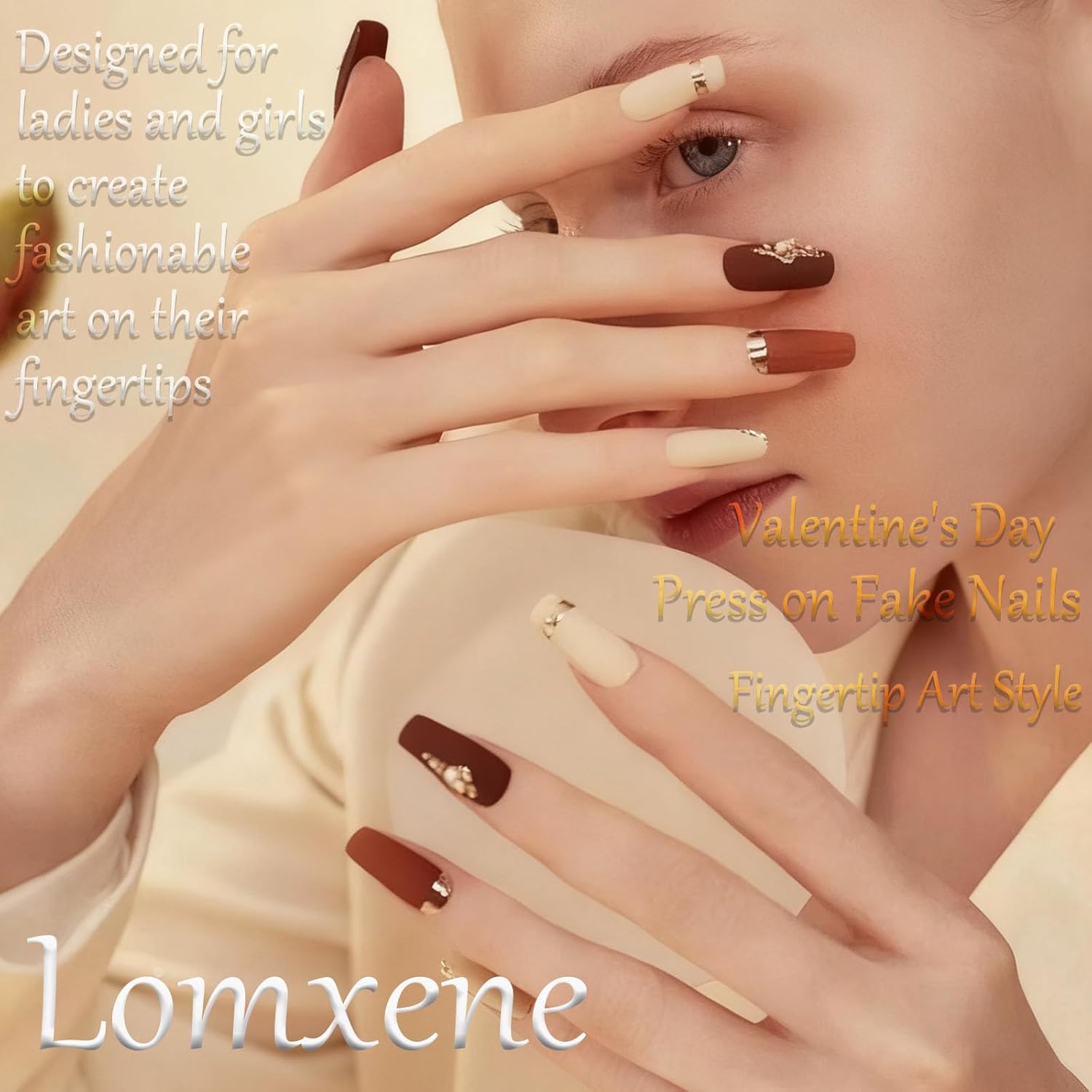 24Pcs Valentine’s Day Press on Nails for Women Medium Square…,