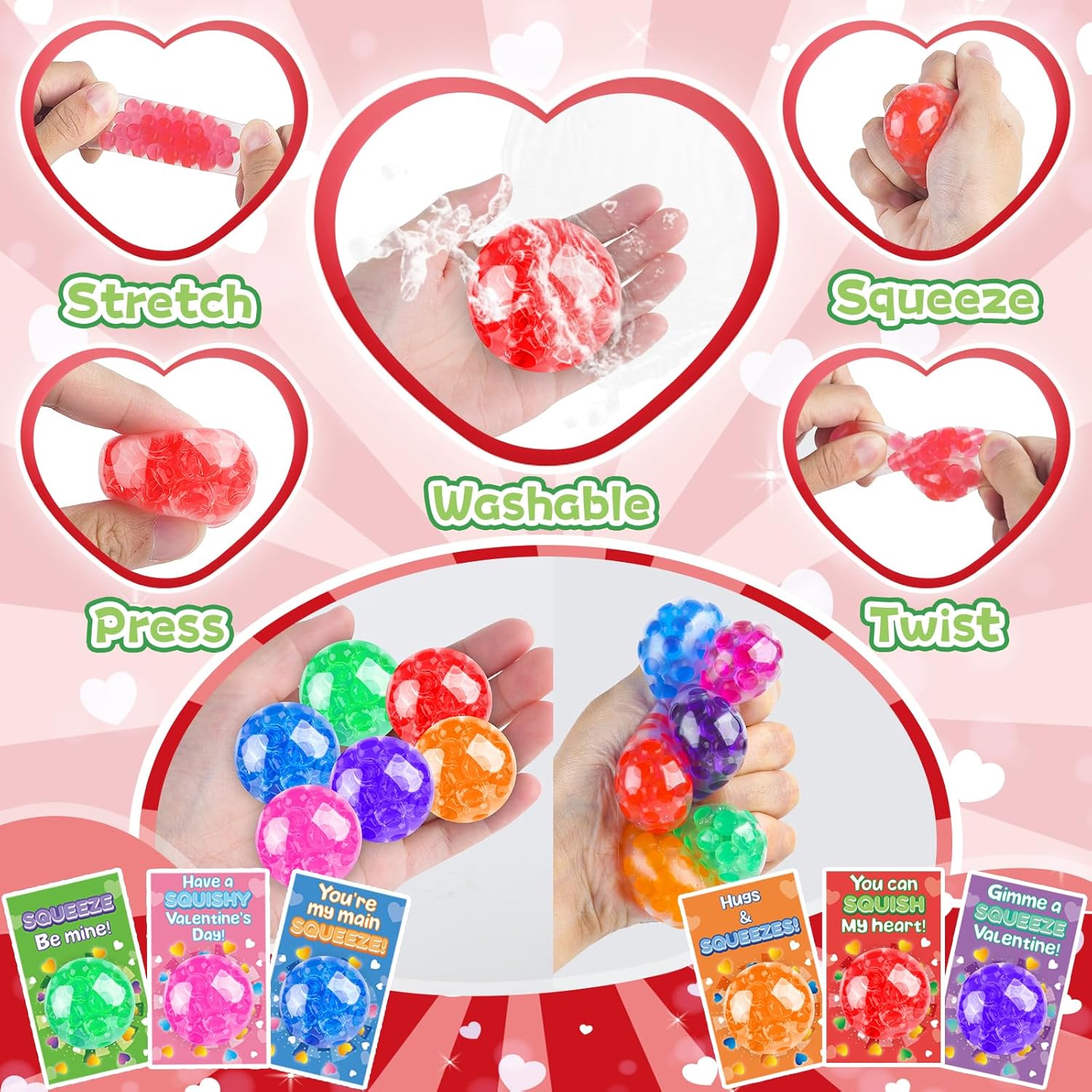 30 Pack Valentines Day Stress Squ ishy Balls Bulk,…,