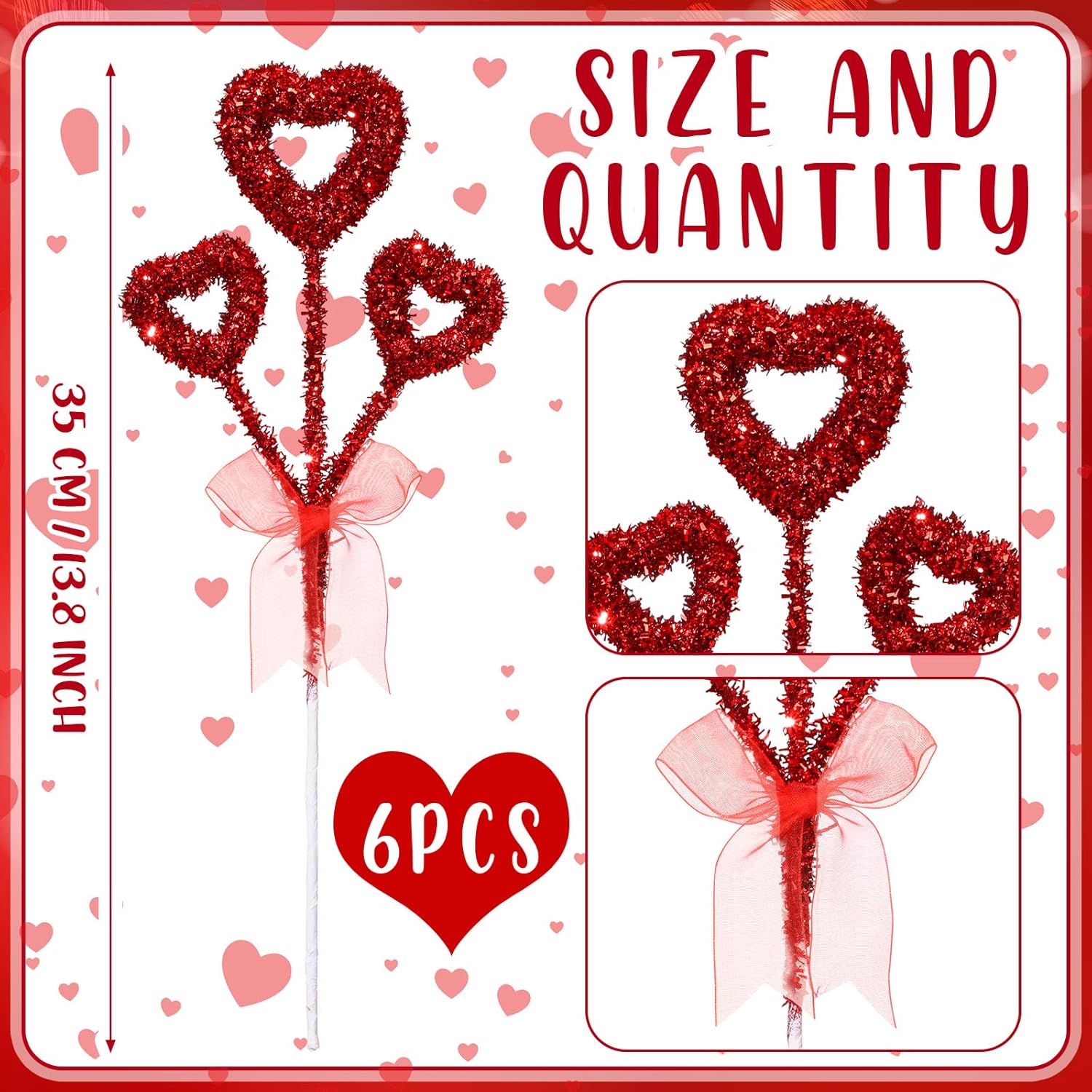 6 Pcs Valentine’s Day Decorations Tree Topper Glitter Tinsel…,