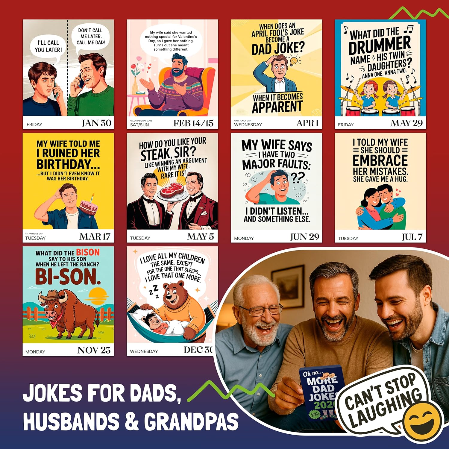 Dad Joke Desk Calendar 2026 – Funny Gifts for Dad, Page-a-Day Desk Calendar with Dad Jokes, White Elephant Gifts, Gifts for Men, Stocking Stuffers, Dad Christmas Gifts,