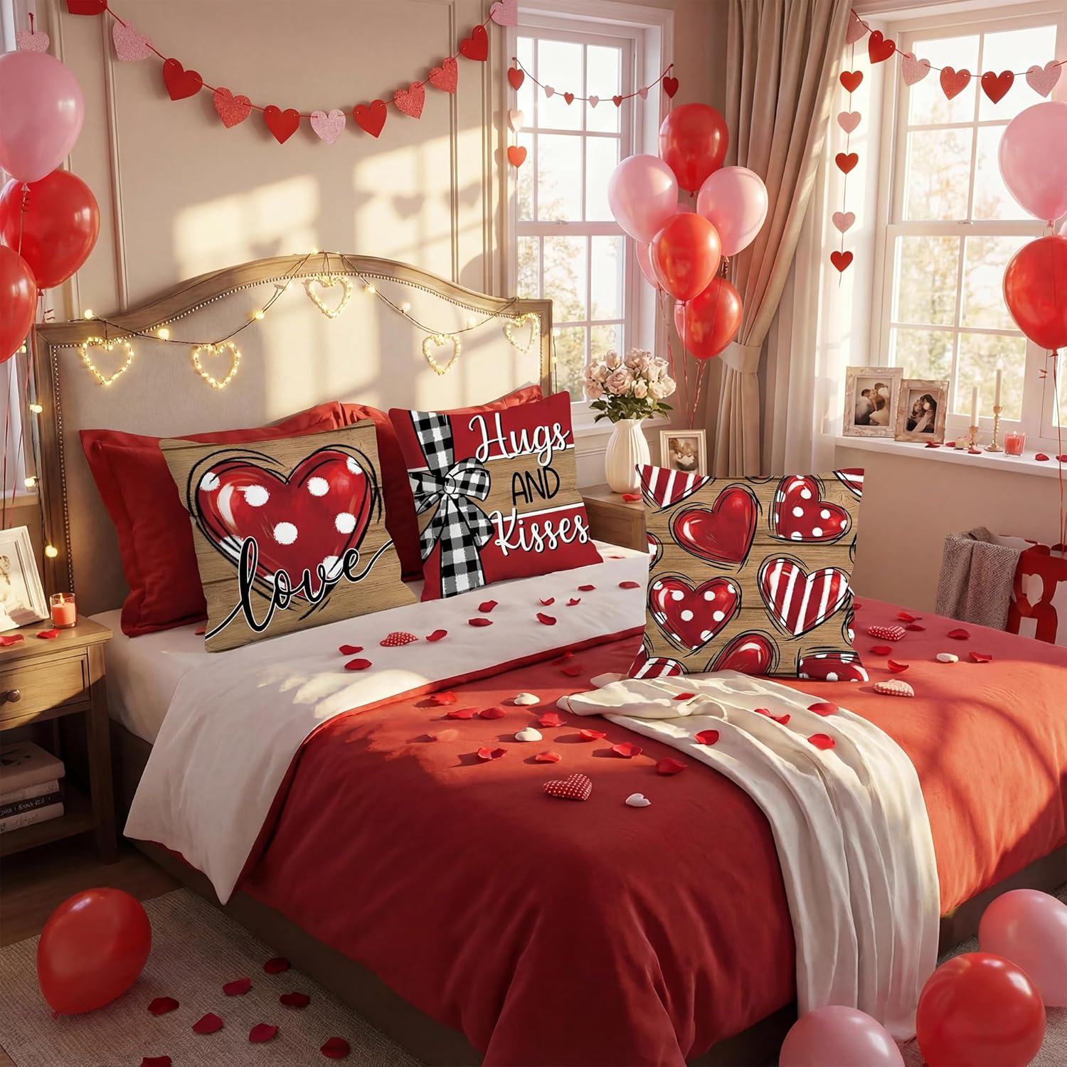 Valentines Day Love You More Hugs and Kisses Throw Pillow…,