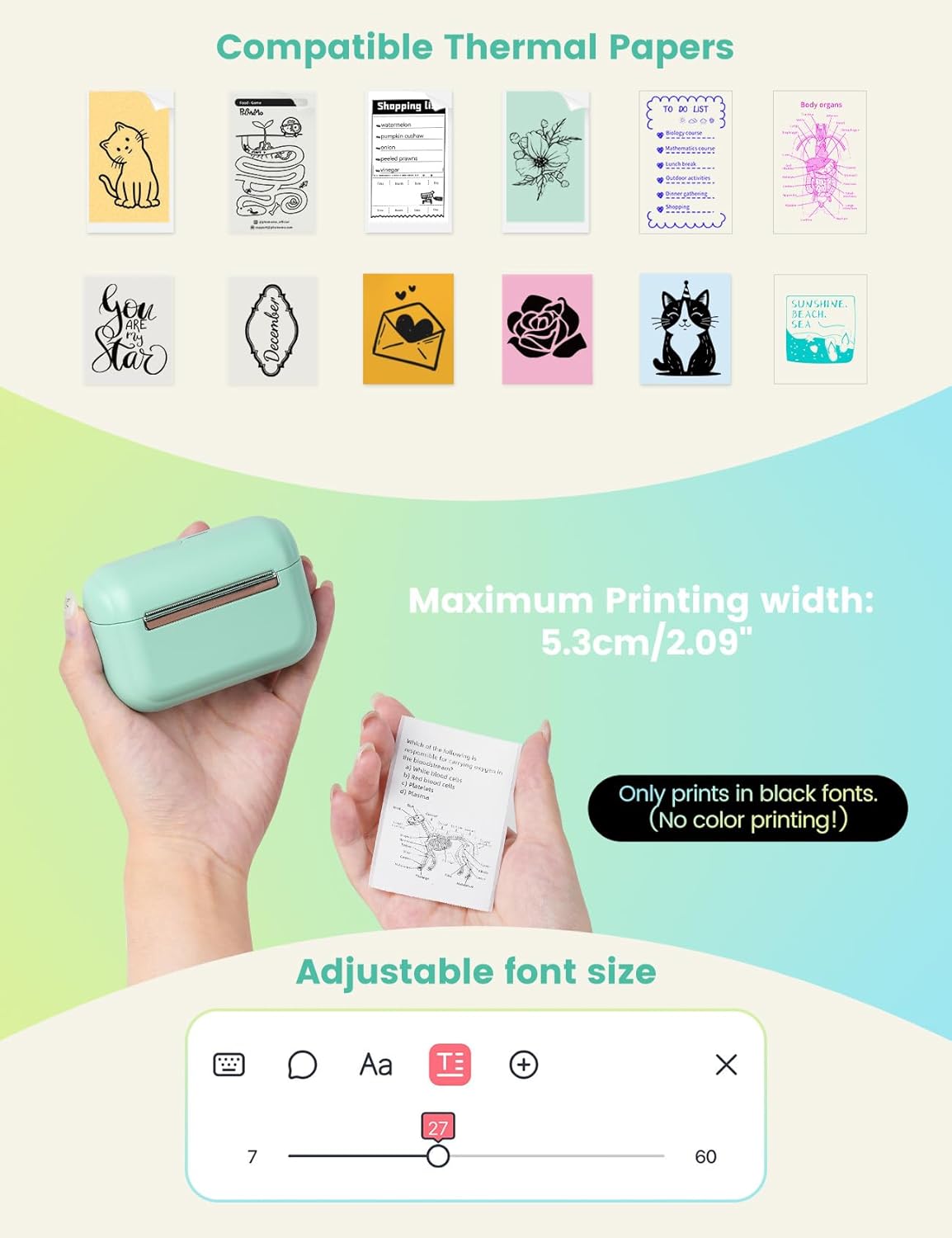 Memoking Mini Printer – Portable Sticker Printer Q02E, Pocket Thermal Inkless Sticker Maker Bluetooth Print Pod Small Receipt Printer for Study Note,Diagrams, Scrapbook, Journal, Gift, DIY,