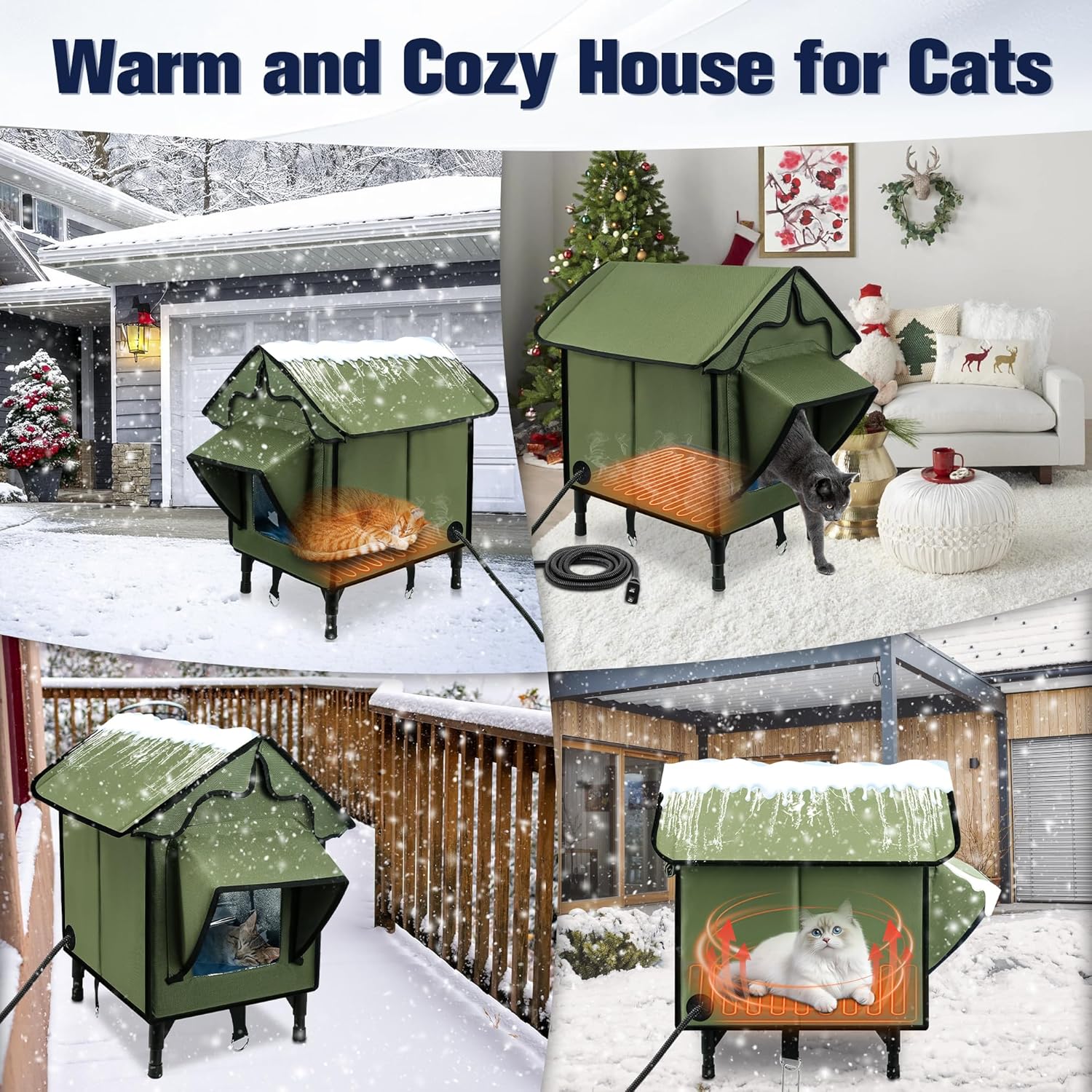 Newget Heated Cat House for Outside, Winter Insulated Cats…,