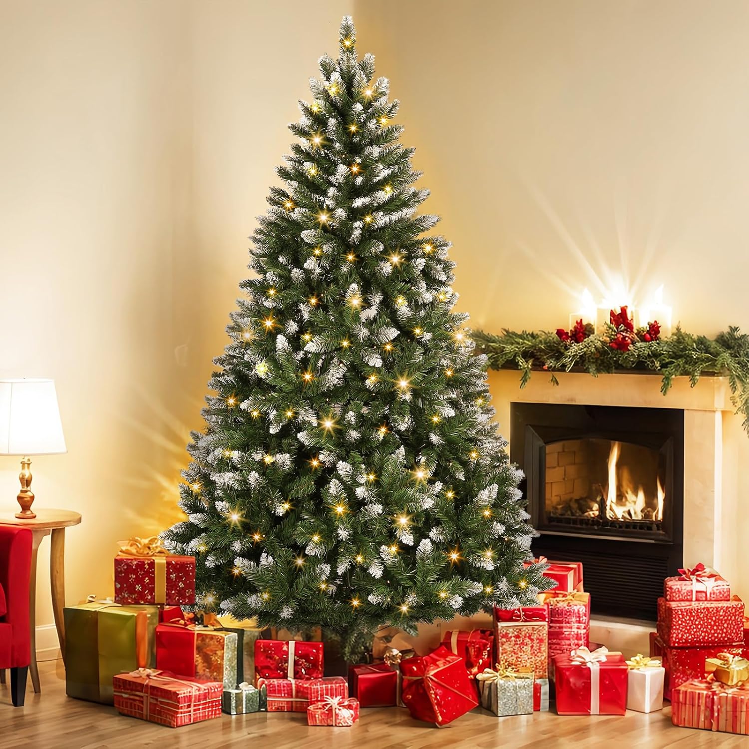 6 FT Prelit Artificial Christmas Tree with 250 Dual-Color LED Lights, 11 Modes Timer, 800 Snowy Tips – Easy Assembly Xmas Tree for Indoor/Outdoor Home Christmas Decorations,