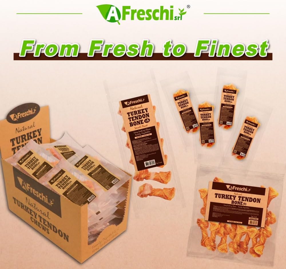 A Freschi srl Turkey Tendons for Dogs, USA-Sourced, Healthy Dog Treats, Rawhide-Free Puppy Chews, Long Lasting, All Natural, Hypoallergenic Dog Treats for Small Breeds, 8 oz Pack Bone (S),