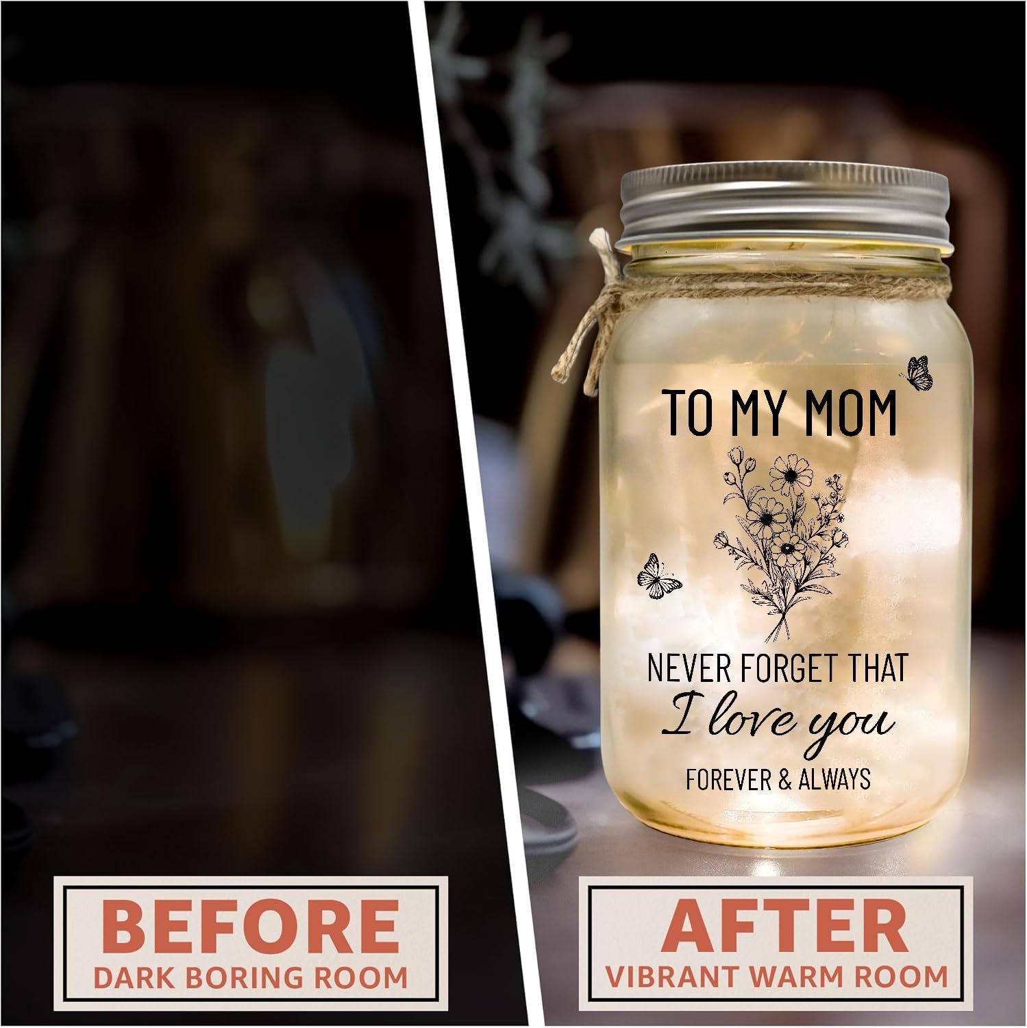 I Love You Mom Gifts From Son Daughter Kids – To My Mom from Son Daughter – Thank You, Heartfelt, Sentimental Gifts for Mother Christmas, Birthday – Glass Decorative Jars – Mason Jar Night Light 14oz,