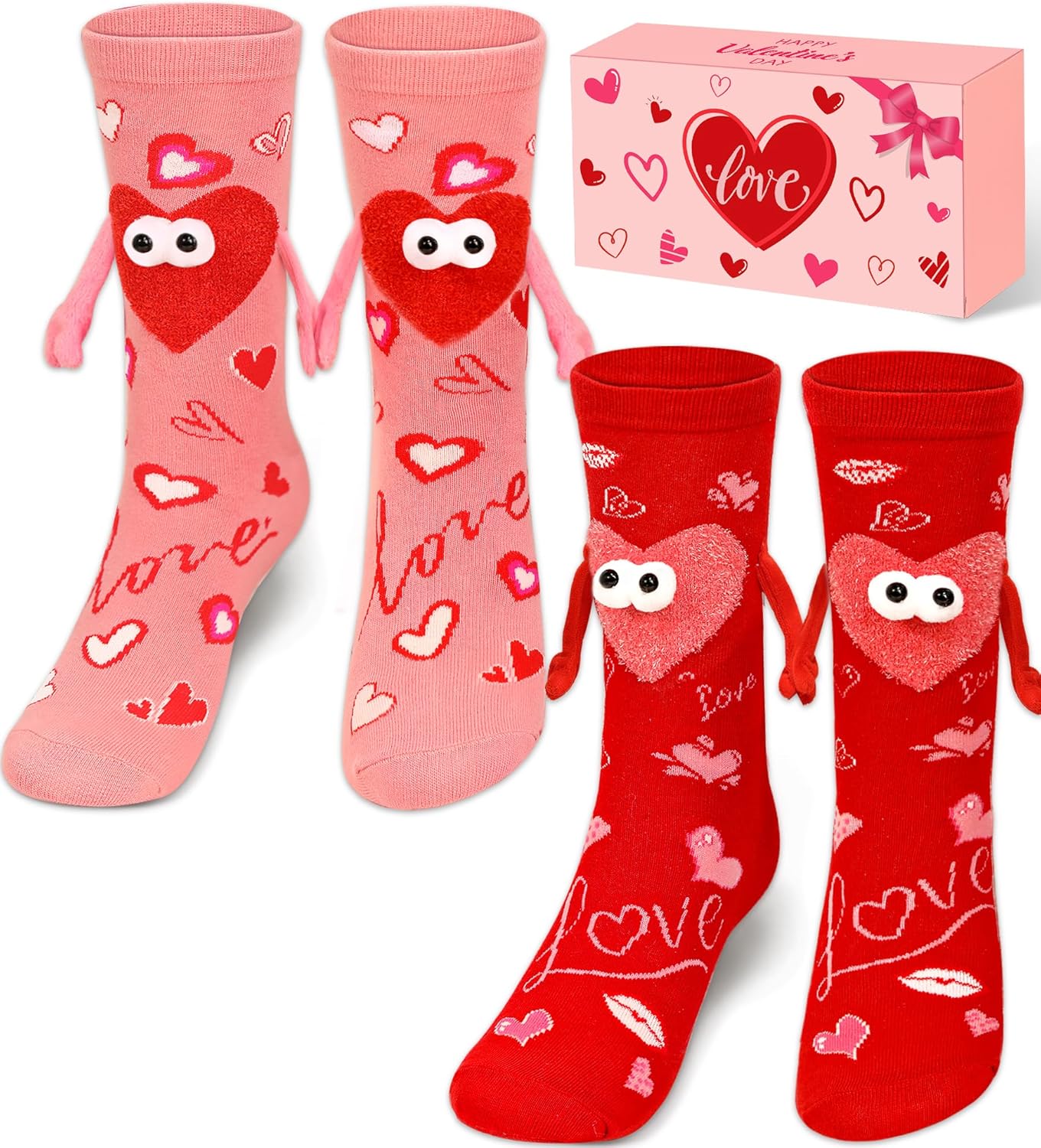 itswordpiz Valentines Day Gifts for Her, 2 Pairs Valentines Socks for Women, Funny Magnetic Holding Hands Couple Socks for Wife Friends or Teens,