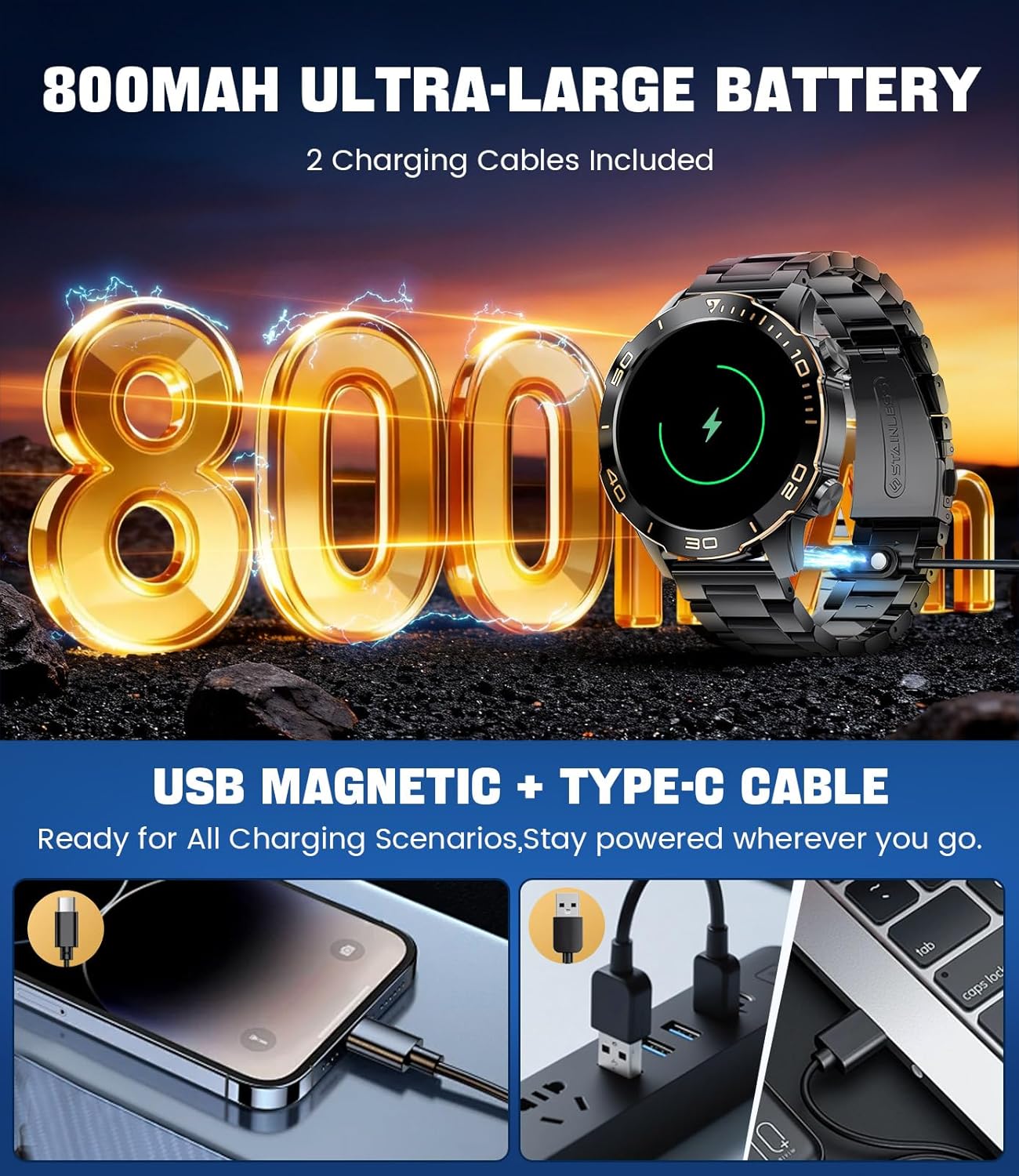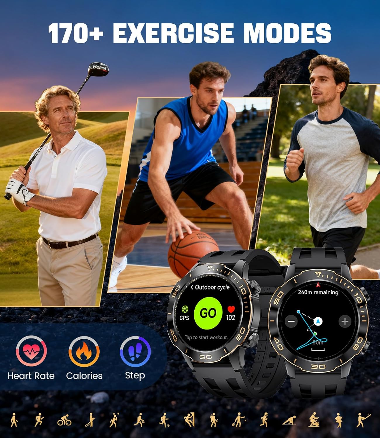 Smart Watches for Men Luxury for Android iPhone/50 Day Battery,Fitness Watch with Heart Rate/Blood Pressure/Sleep Monitor,Men’s Smartwatch Amoled Display,100+ Sport Modes,IP68 Waterproof,Black, 40mm,
