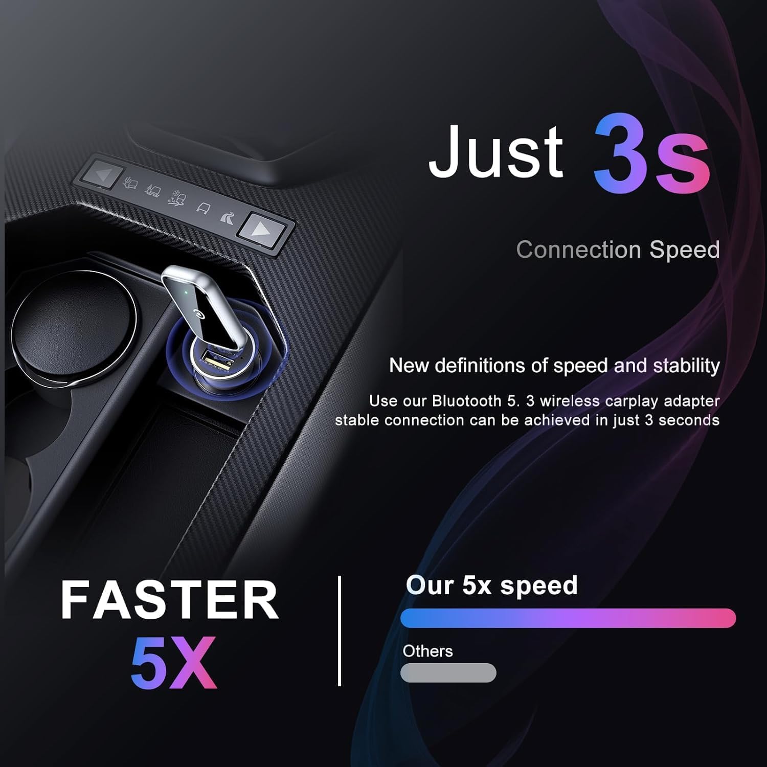Wireless carplay Adapter for iPhone(IOS10+).Phone-car connectivity. Wired to Wireless Smart car Machine Interconnection abox- No Latency from Phone to Screen.Mini Size with Extended USB-A and Type-C,